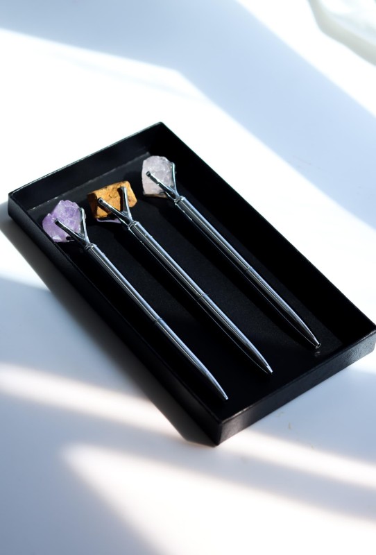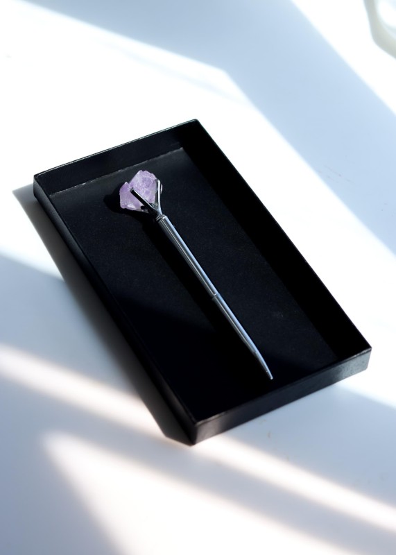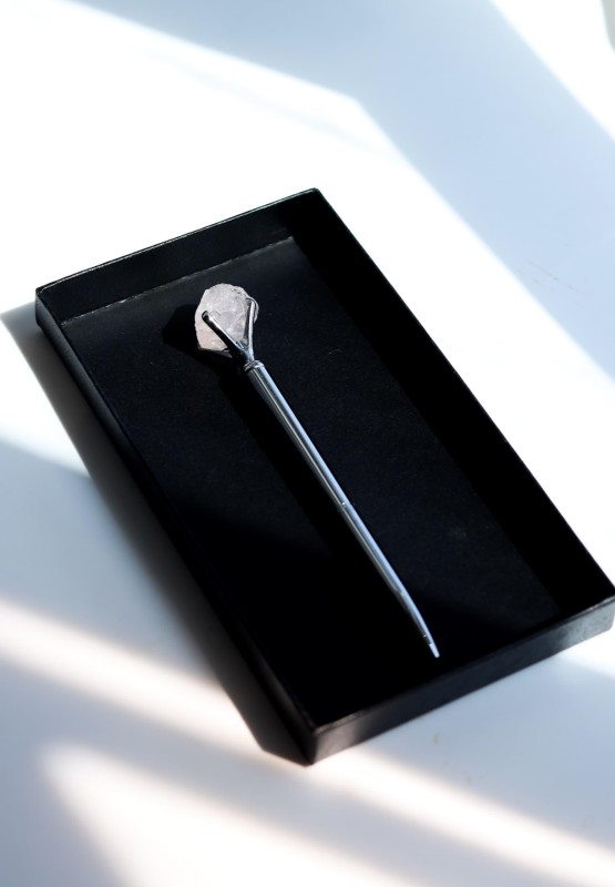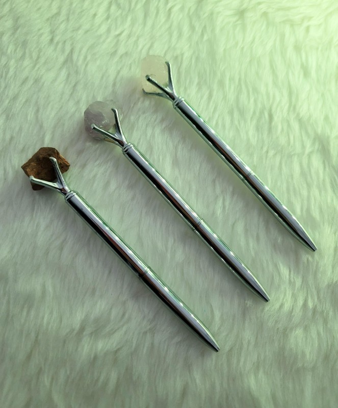 قلم فضة متوّج بحجر خام طبيعي ، كوارتز وردي ، عين النمر ، اماتست .... ومتوفر بأكثر من ١٠٠ نوع حجر طبيعي