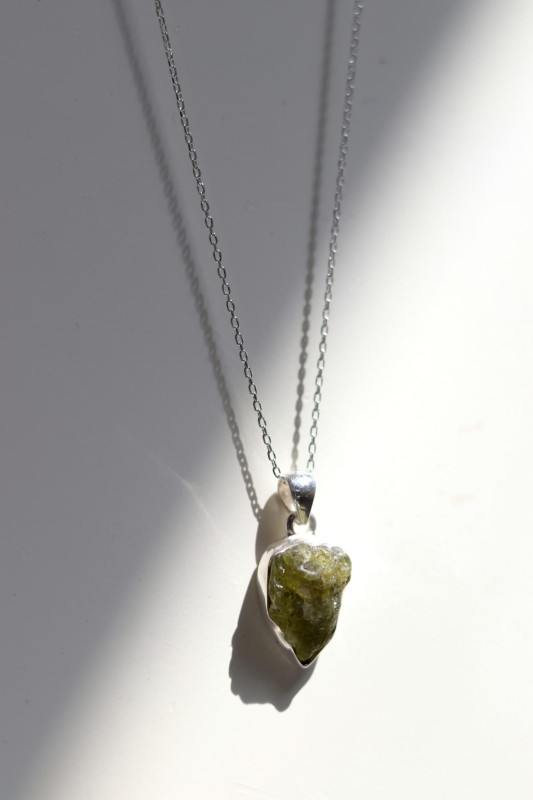 تعليقة فضة نسائي بحجر الزبرجد الطبيعي بشكله الخام